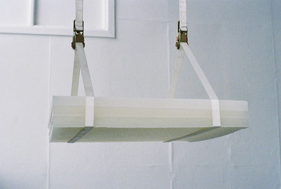 "Taking us through a conversation, sculpting intangible emotions into tangible objects through the manipulation of material and its inherent formal qualities. Slabs of wax are cast with some impregnated with elements of beeswax. The subtle changing of colour of these slabs and their soft bending under the strain of hanging are evocative of an artist at one with her landscape and material.